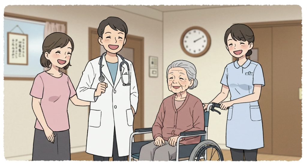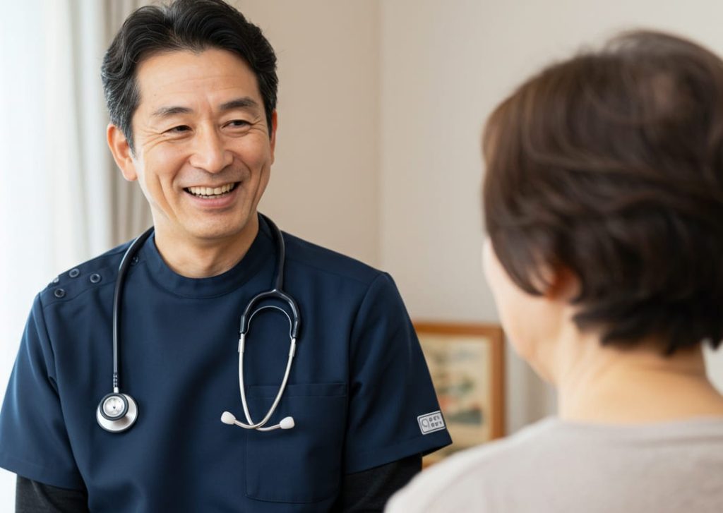 訪問診療は、患者さんの「かかりつけ医」として定期的に診療を行うことで、日頃の全身状態や変化の兆候を把握できるため、急な病状変化のときも、患者さんやご家族の希望に沿った対応ができるというメリットがあります。