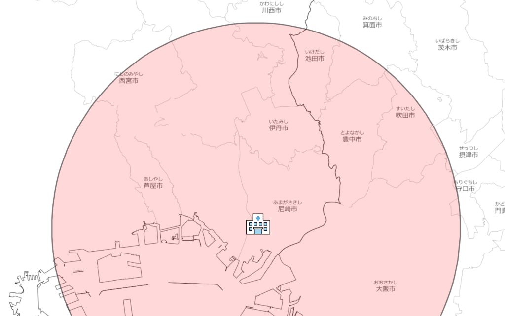 尼崎市、伊丹市、西宮市(一部)、宝塚市(一部)、大阪市西淀川区など(当院から片道16㎞圏内でスケジュール調整が可能な範囲となります)